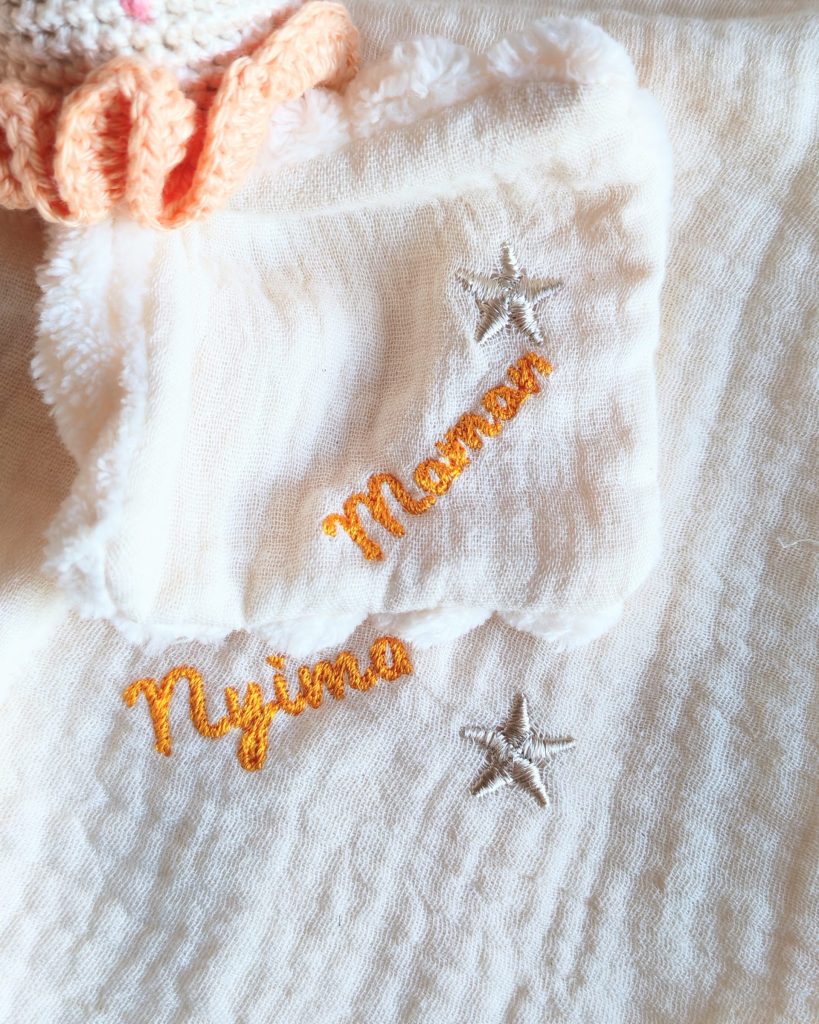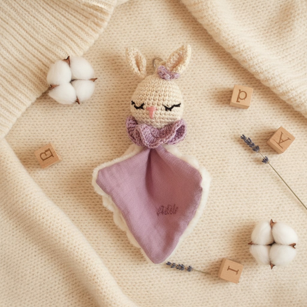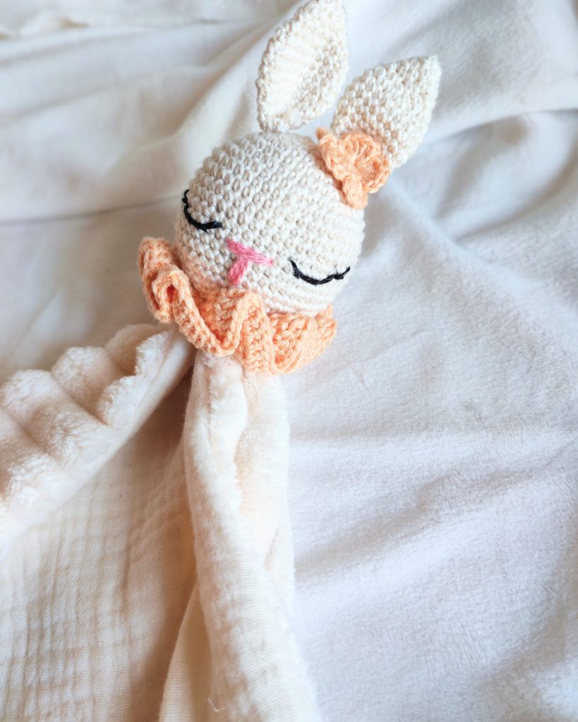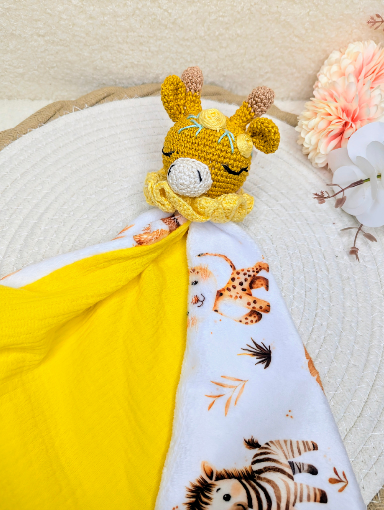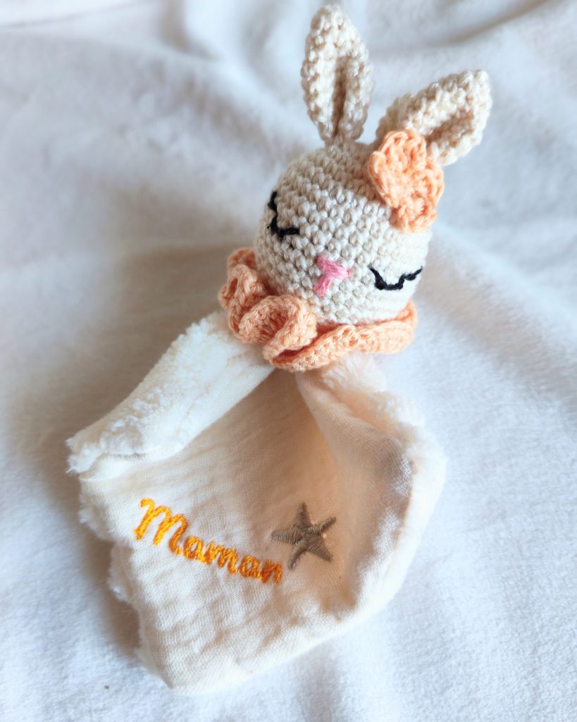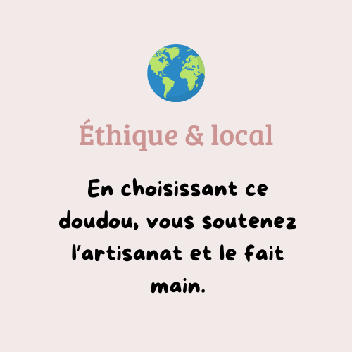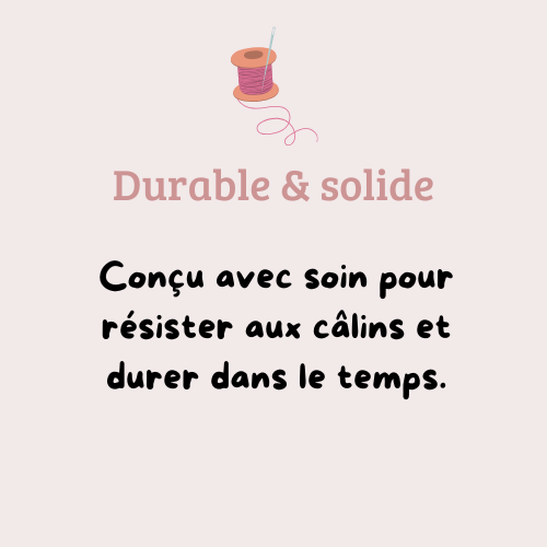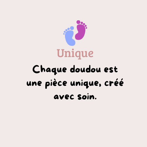 Chaque doudou que je réalise est pensé comme un petit compagnon chargé de tendresse. J’utilise uniquement des matières douces, sûres et adaptées aux enfants, pour que chaque création soit non seulement jolie, mais aussi parfaitement sécurisée.